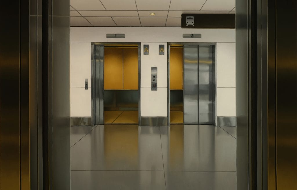 Yes, it's a painting. And yes, it might well remind you of "Severance", but that's because "Severance" taps into the same Edward Hopper/liminal space thing that Canadian artist Peter Harris had already been working on for some time.